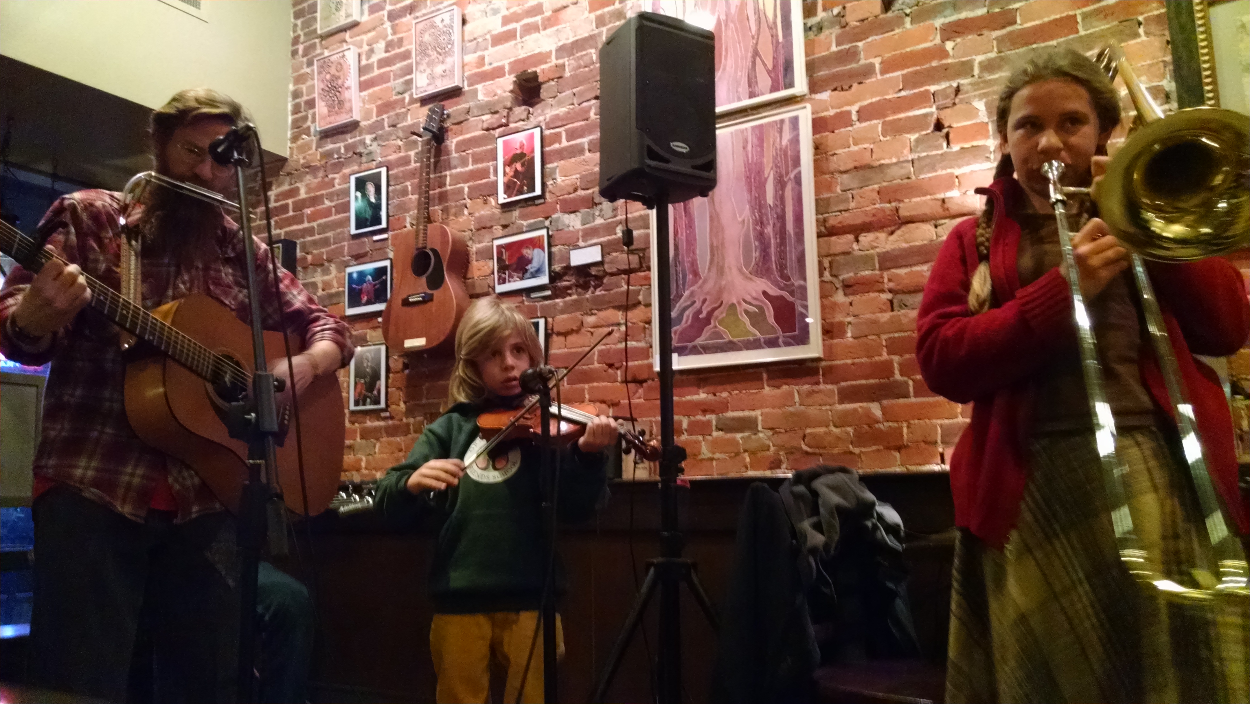Thanks to Jeremy and Audra for bass and backup singing, Anna and Zeke for singing and playing, Fog and Flame for hosting us, and everyone who showed up, sang along, or just smiled on their way by.