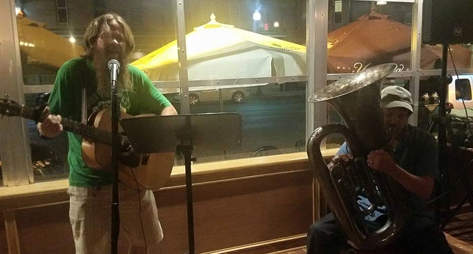 Another good night at the West End open mic – a three-song set with John Huckans on tuba. Have to Pee, from World Famous in Bloomsburg, Lights Went Out, from Dry Ridge, and Devil on the Wild Side, a mix of Walk on the Wild Side and Devil Went Down to Georgia that I crafted about twenty years ago. It sounds much better with the tuba.