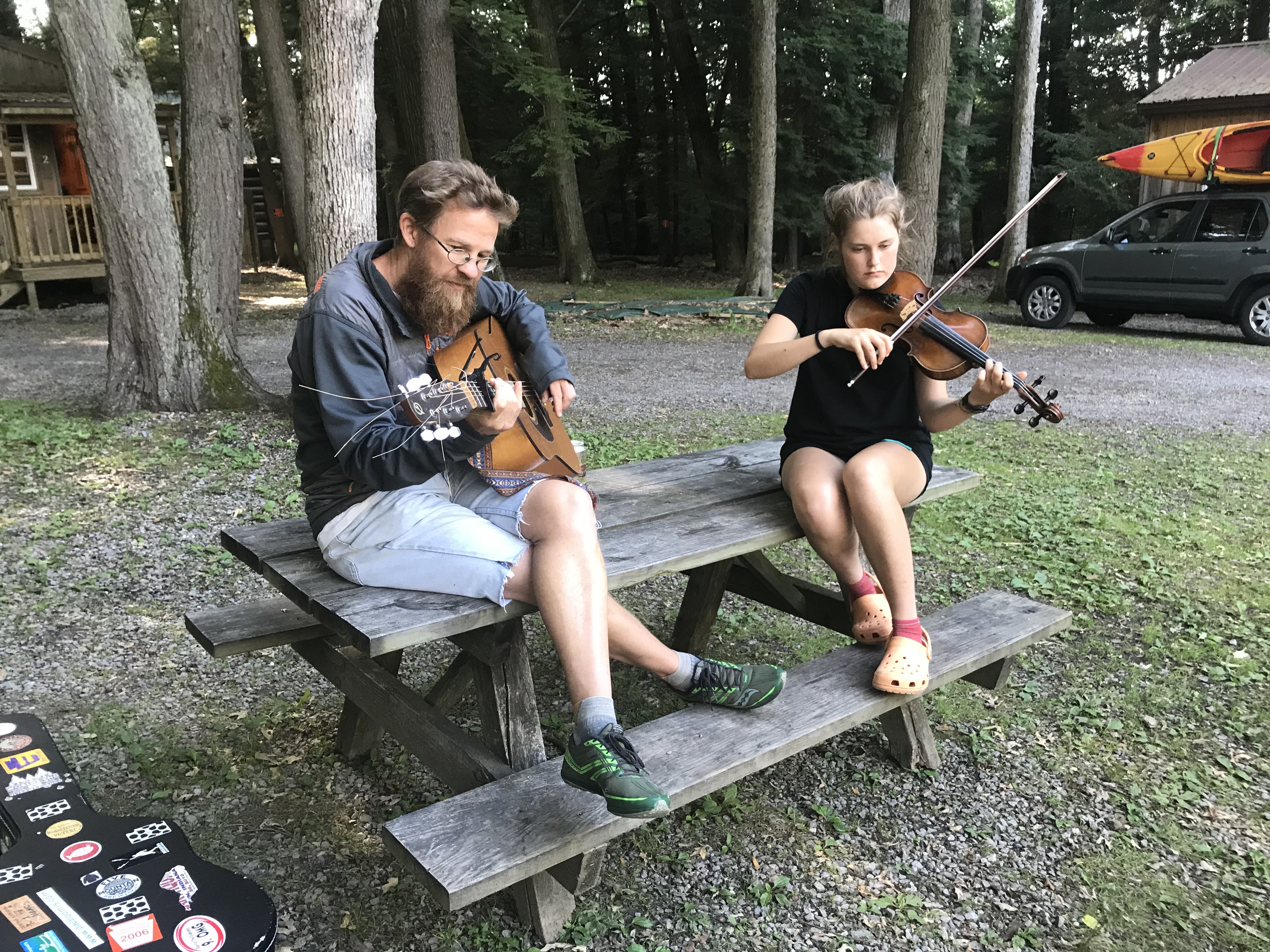 Third is the official release show on August 25 from 7 to 8:30pm, at the Exchange, also on Main Street in Bloomsburg. I’ll be joined by my cousin Katie Loomis-Adams, in from Vermont to play violin with me. (If you’ve heard the album, you’ve already heard Katie.) We’ve never played a public show together, so this is special.