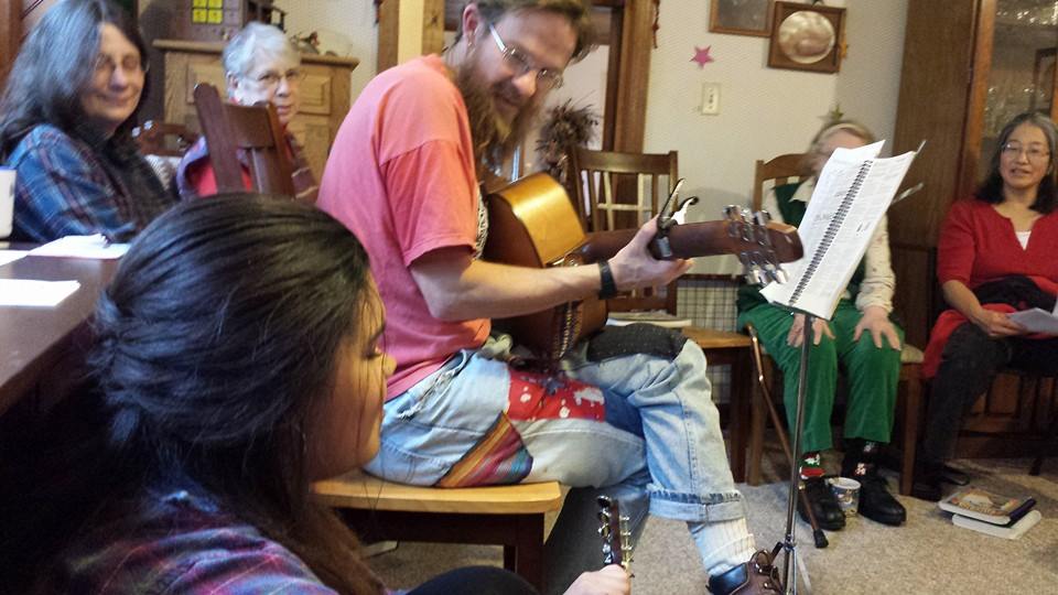 The band gets larger now, adding Jeremy, Audra, Anna, and Zeke for the February 20 Fog & Flame show. Then larger still, adding (I believe) Mike, John H., and Safa for the March 11 ArtWalk show. It’s never the same show twice, folks.